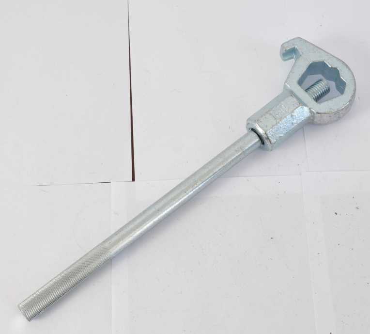 重度調整消火栓レンチ:鋳鉄製ヘッド、スチール製ハンドル。ペンタゴン ナットから 1 3/4 インチのスパナ用。ピンおよびロッカー ラグ用は 1 1/2 インチ ~ 6 インチ。